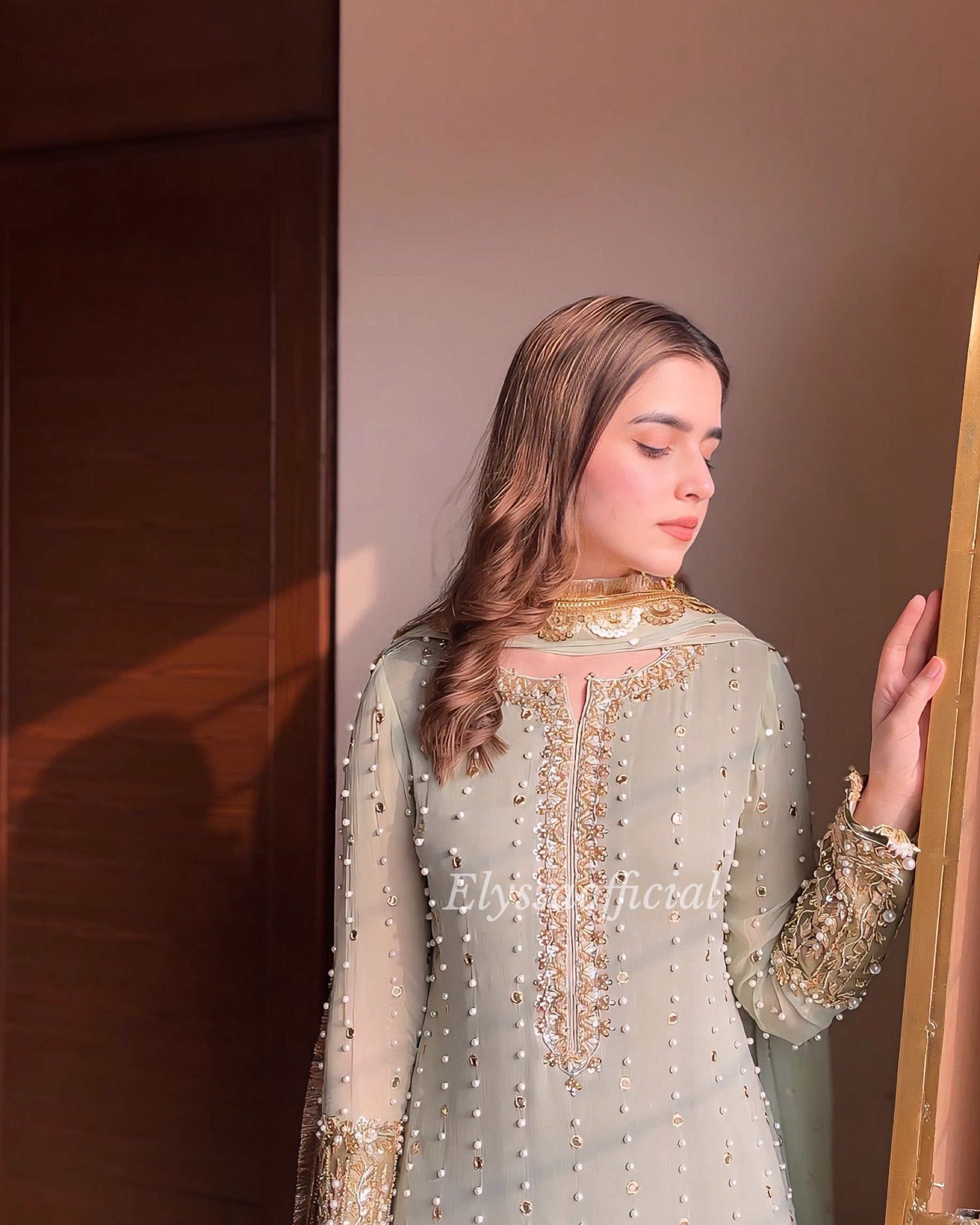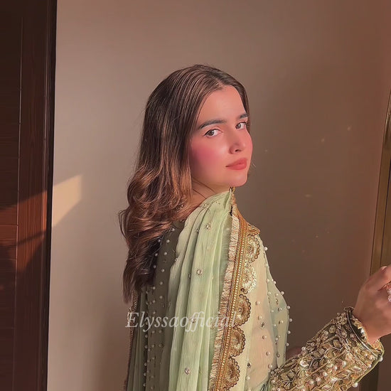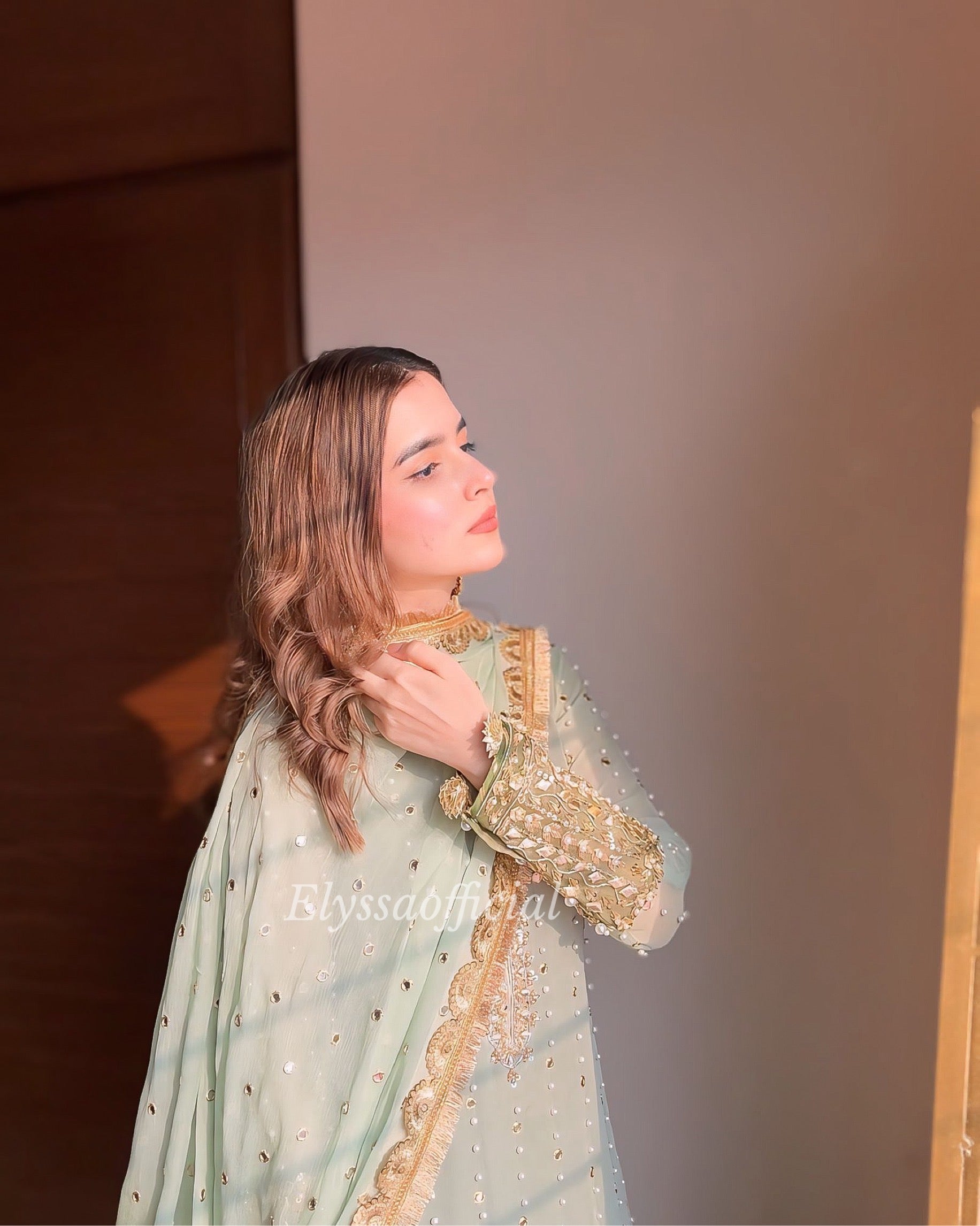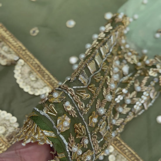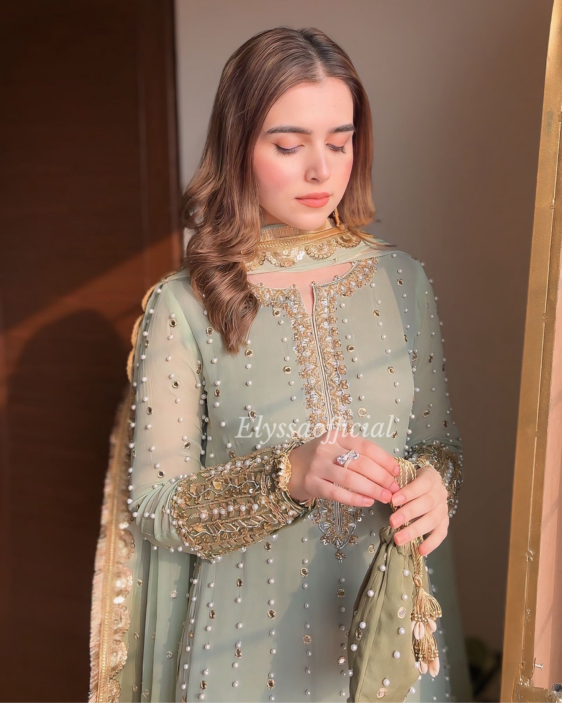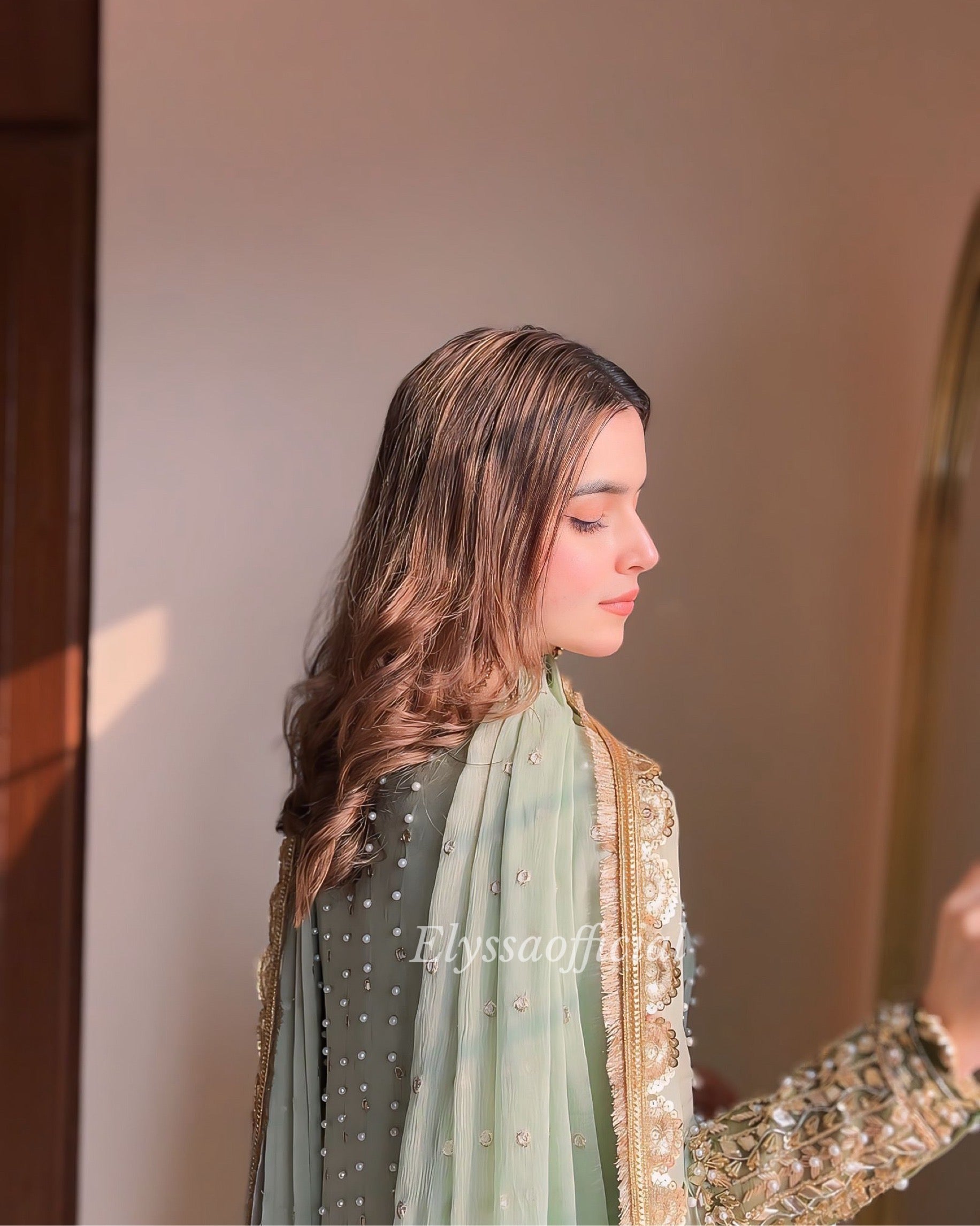 This suit Colour is a sage mint with olive dusky contrast touches.. Stunning unique combination