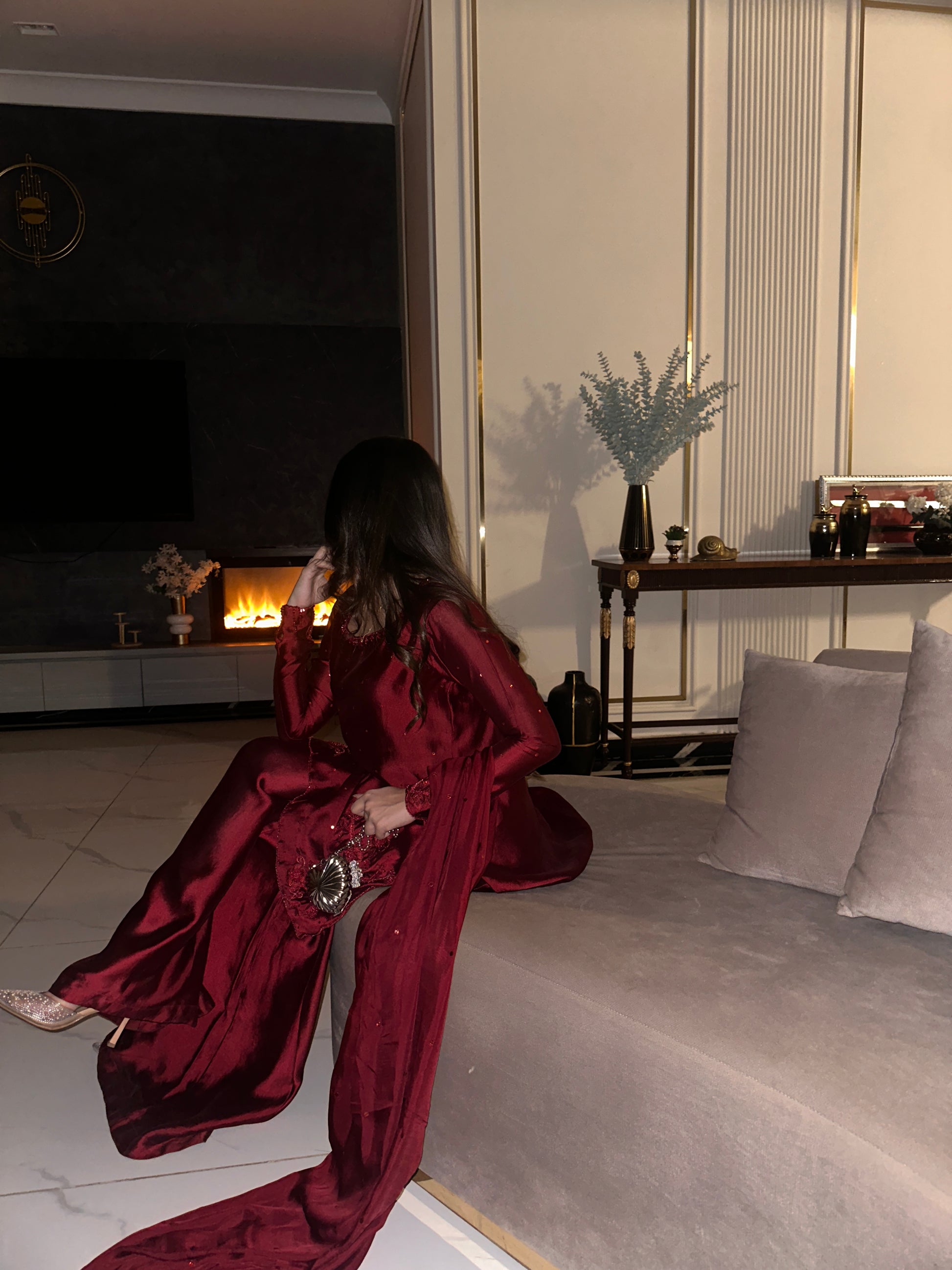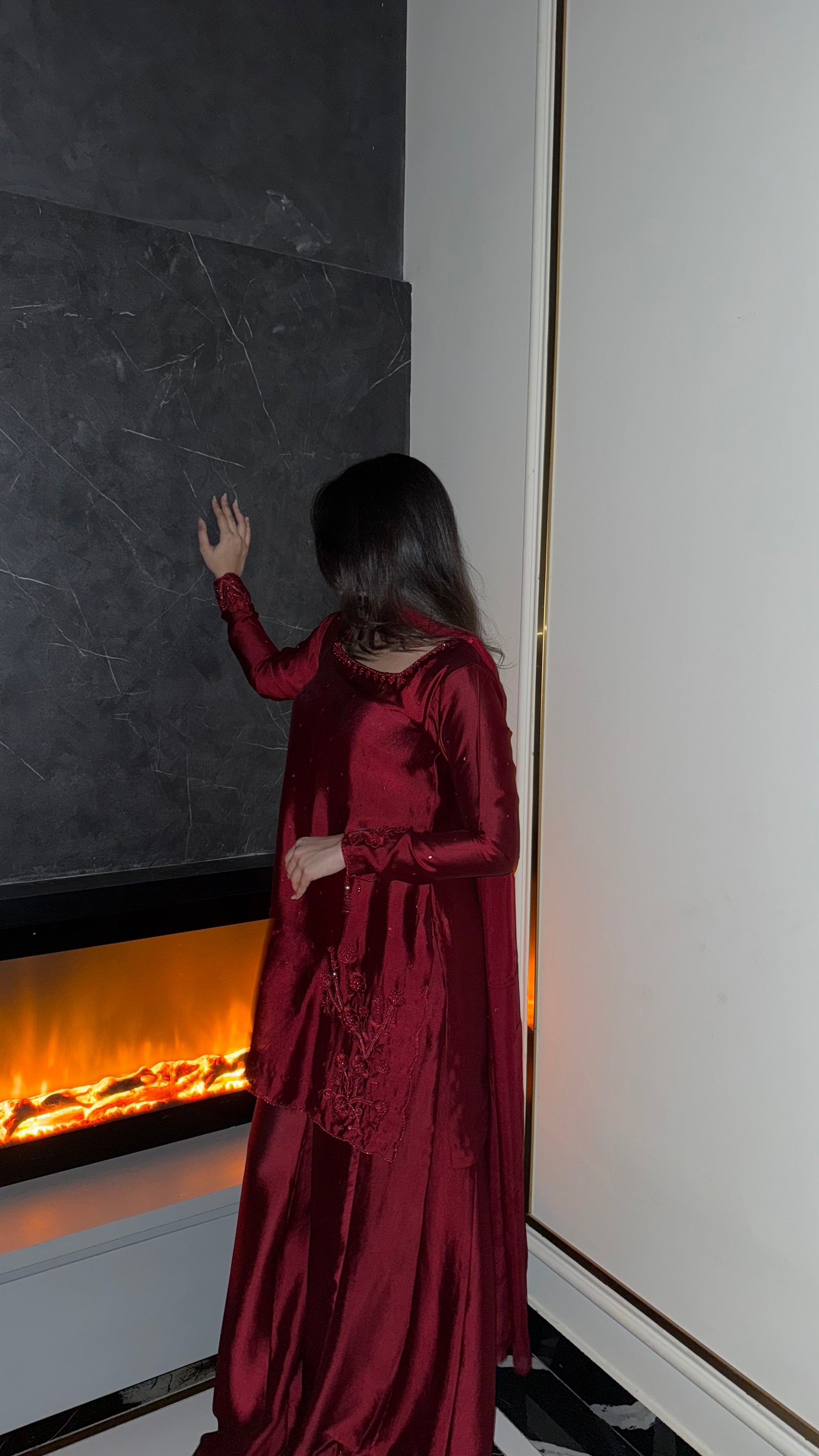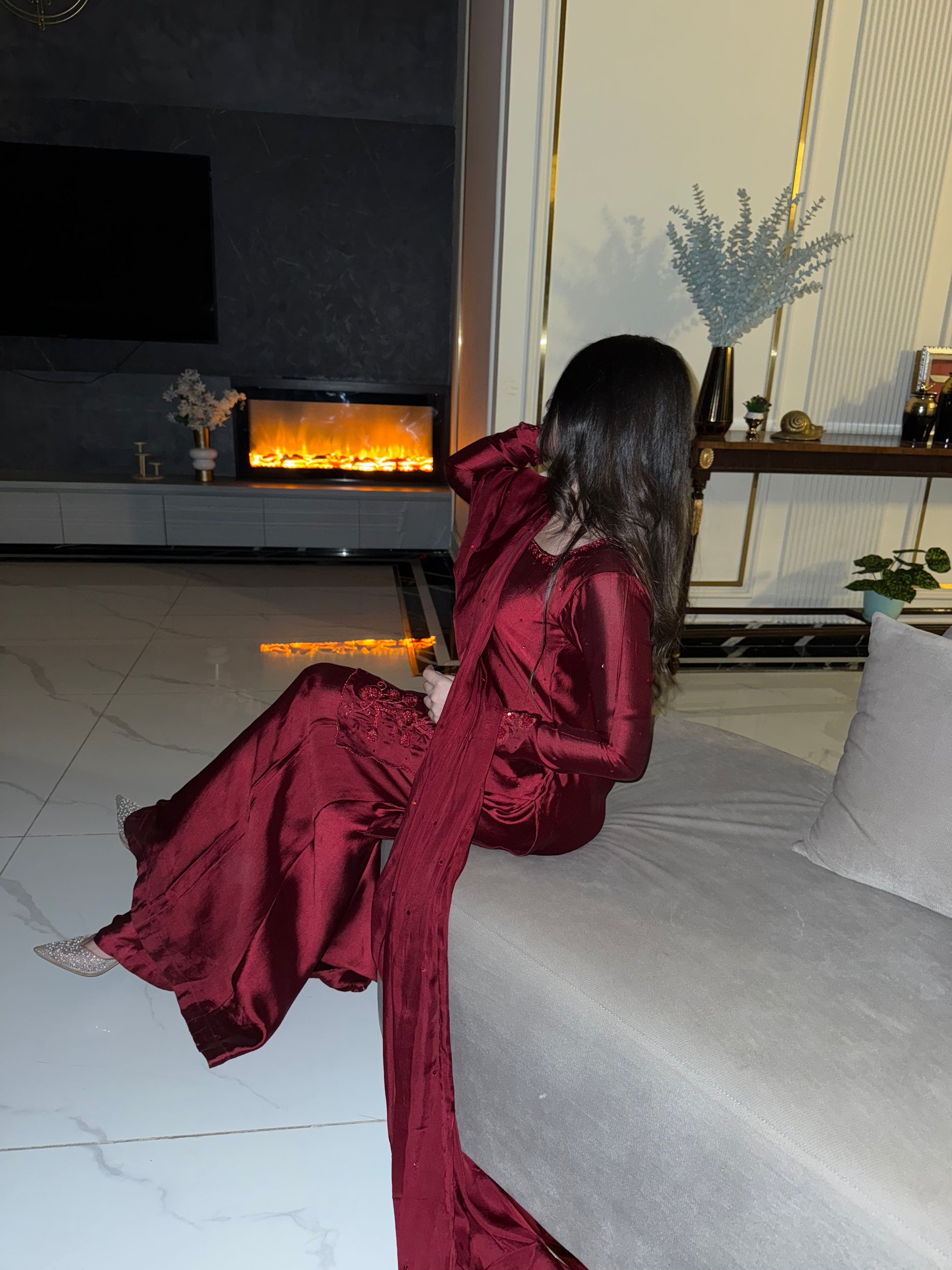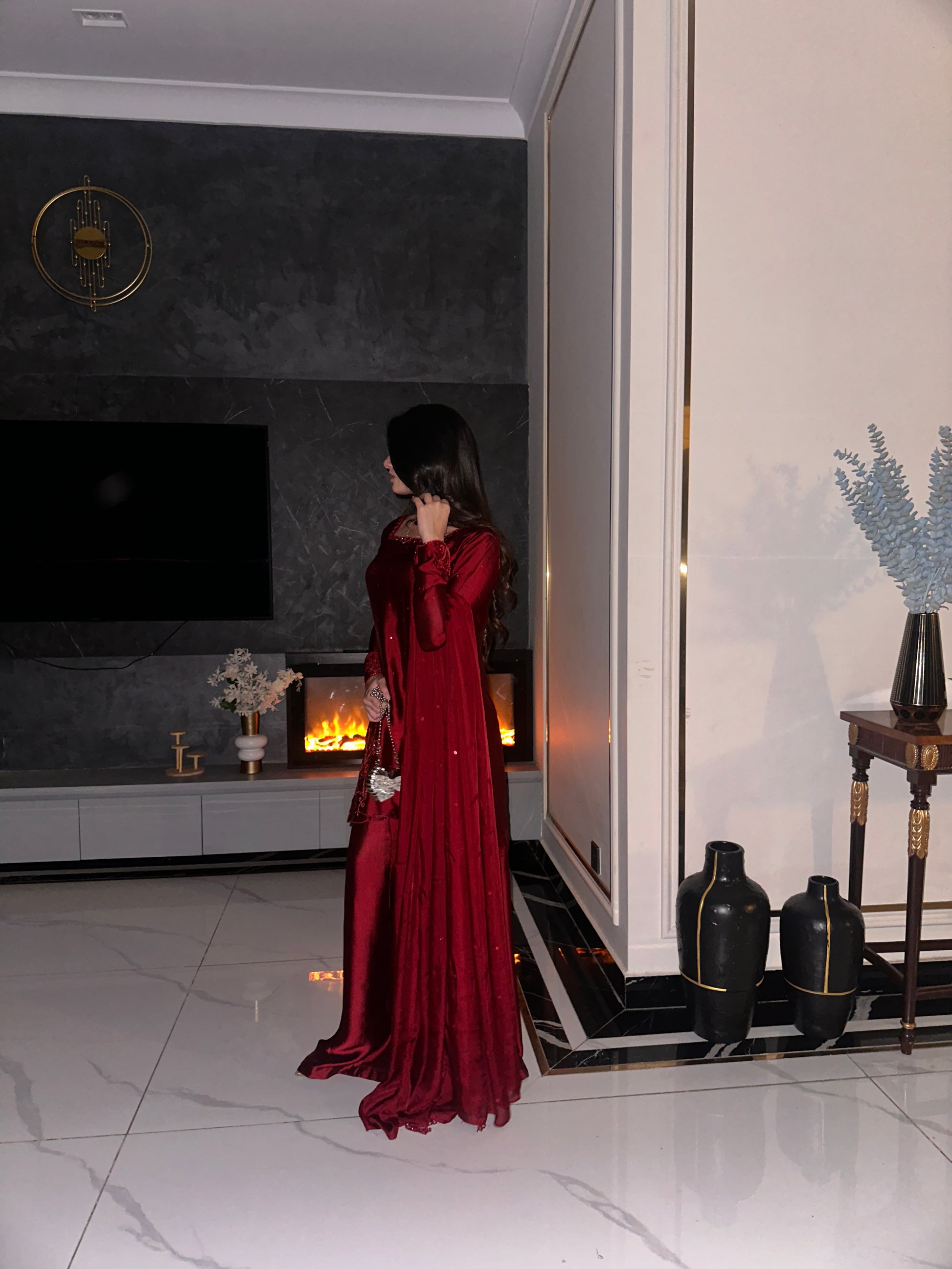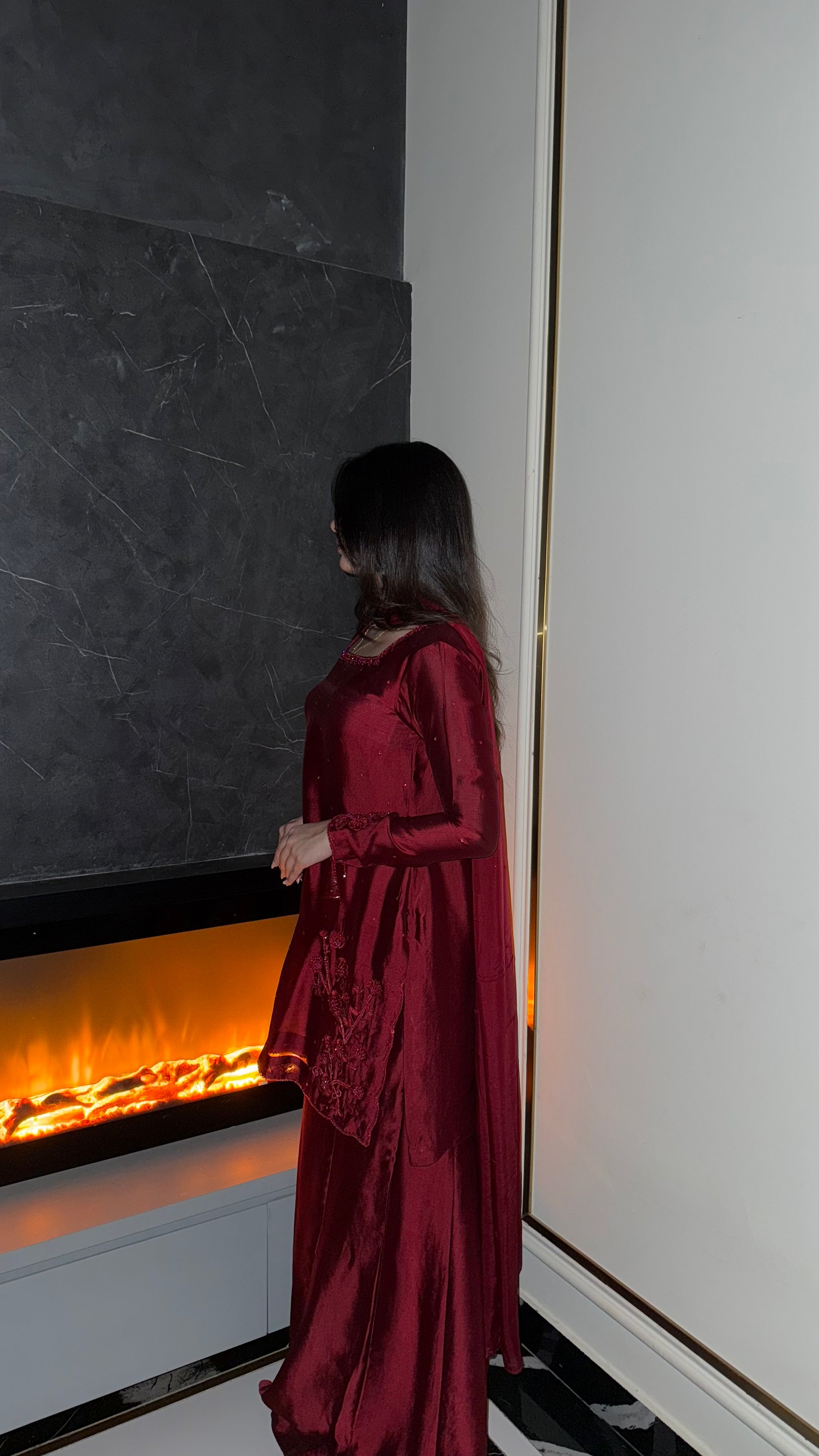 The perfect deep shade of red on a rich silk soft flowy fabric. The red on red handwork, the square neckline and the red tassles on sleeves. All trending and super pretty 😍