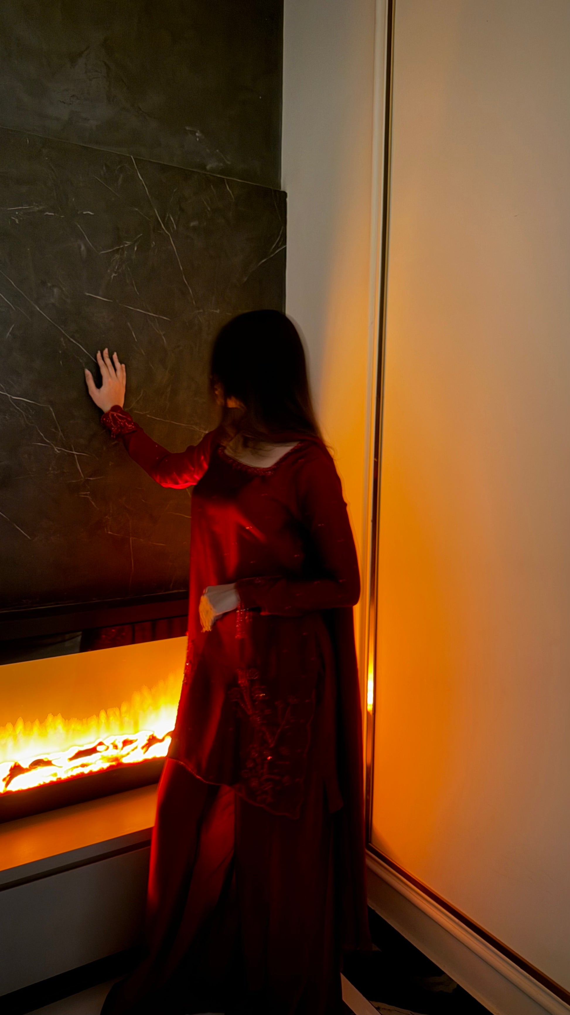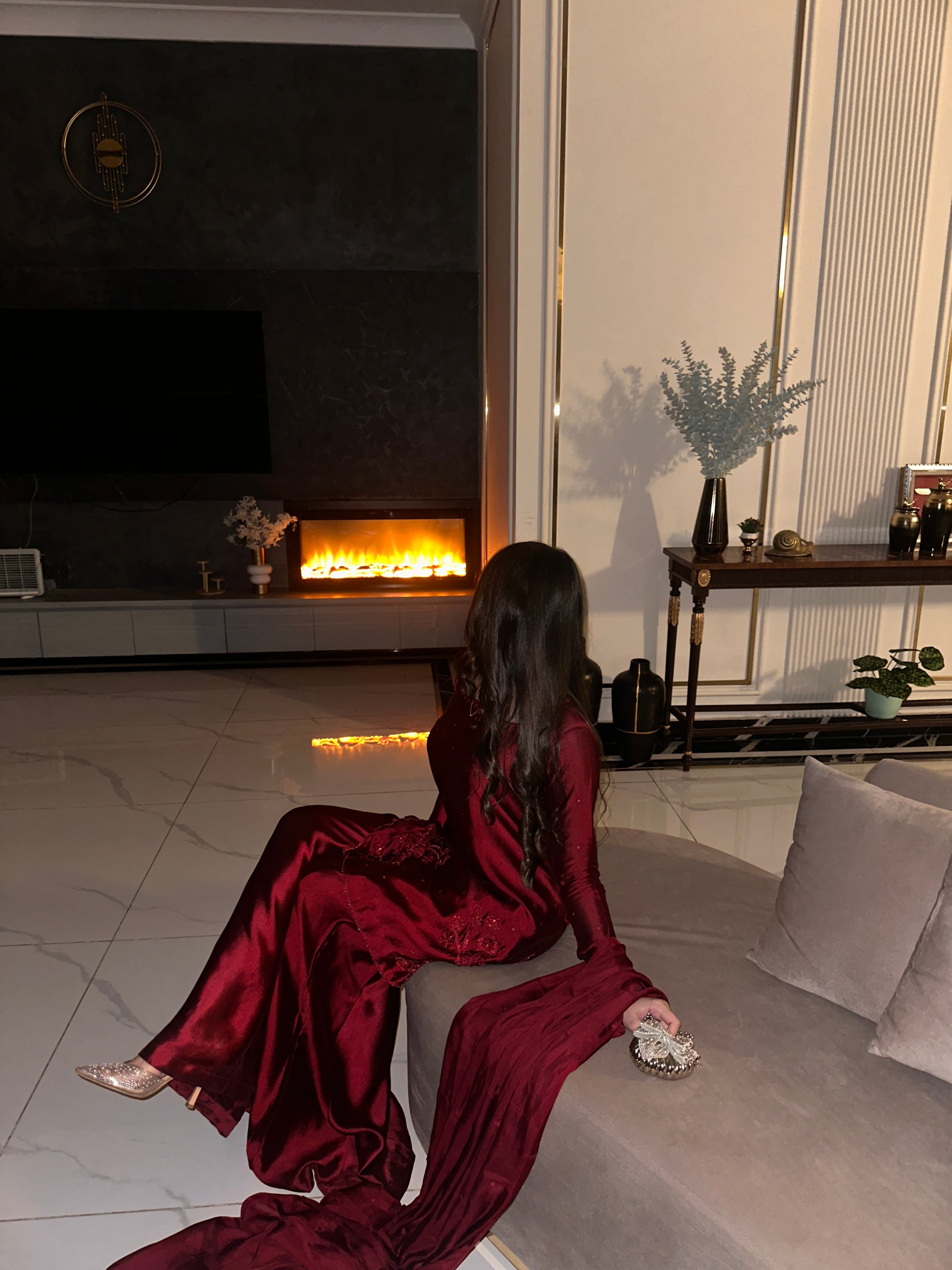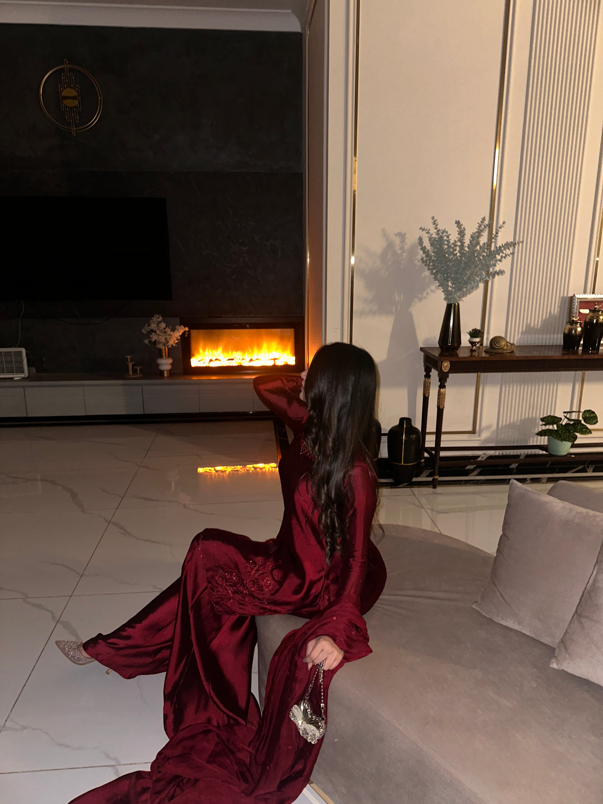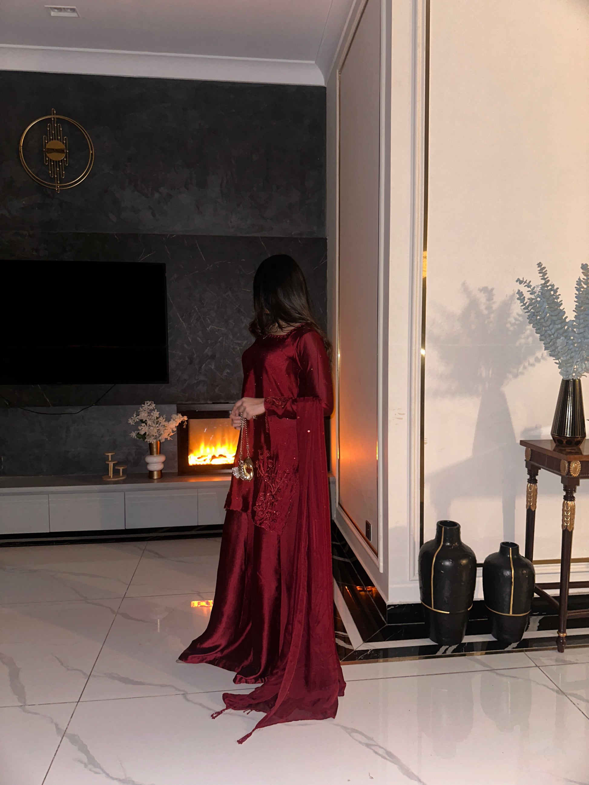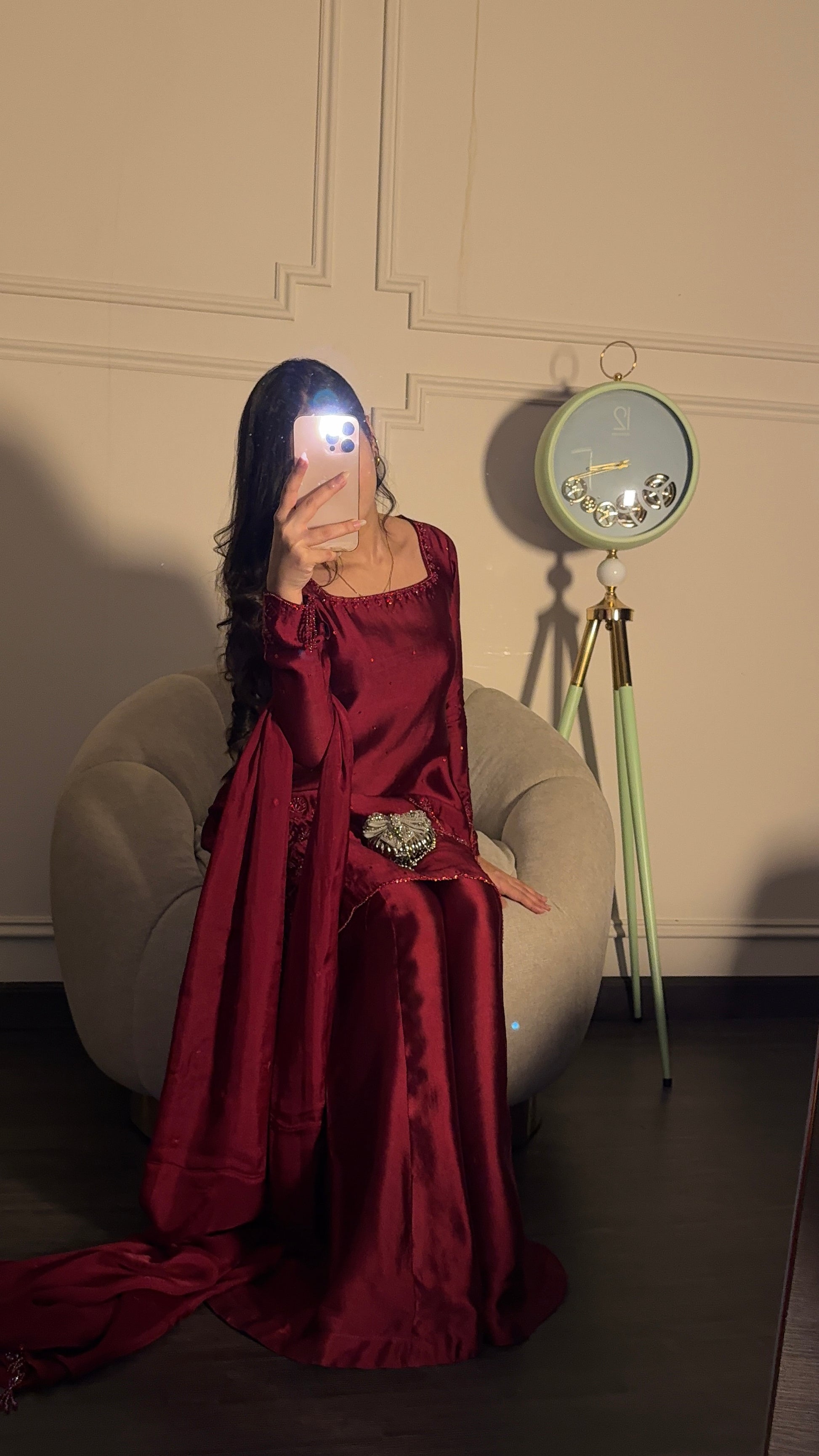 The perfect deep shade of red on a rich silk soft flowy fabric. The red on red handwork, the square neckline and the red tassles on sleeves. All trending and super pretty 😍