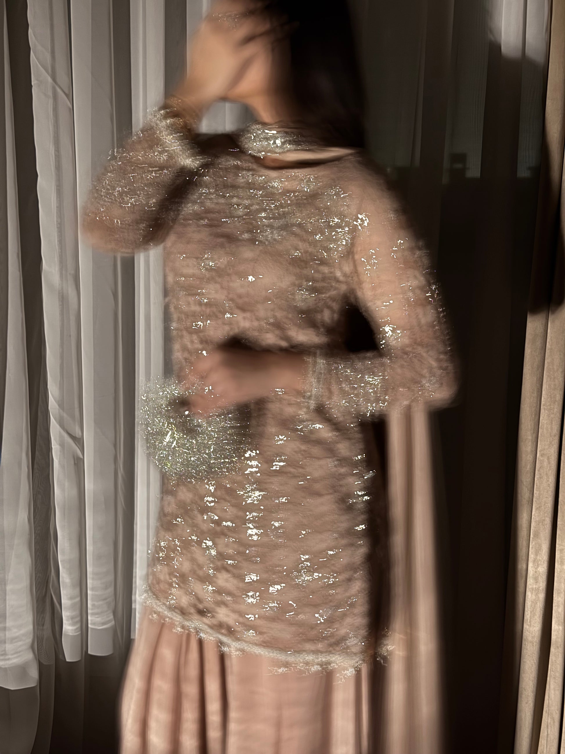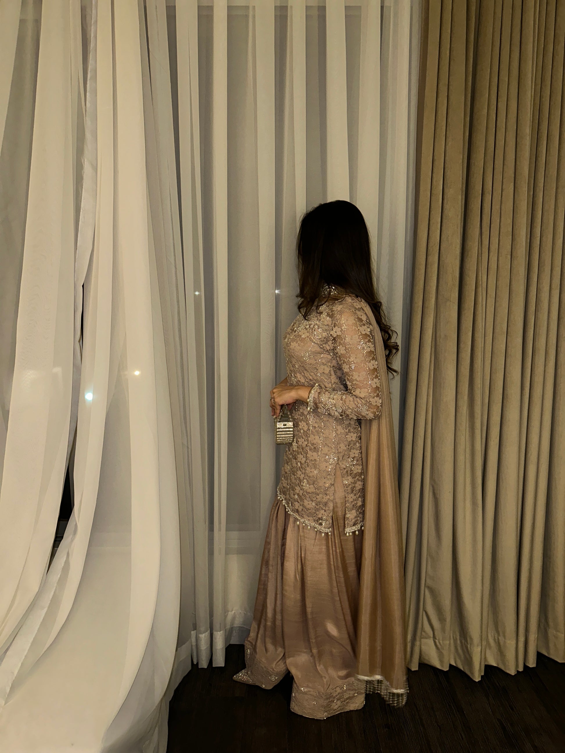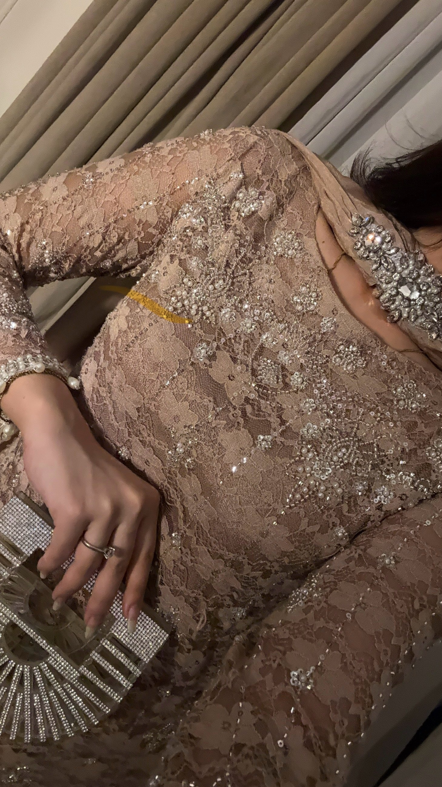 Our Chantilly x Aleena collab is full of 3 different colours on a stunning heavy pearl Cutwork base with stone work on the shirt.