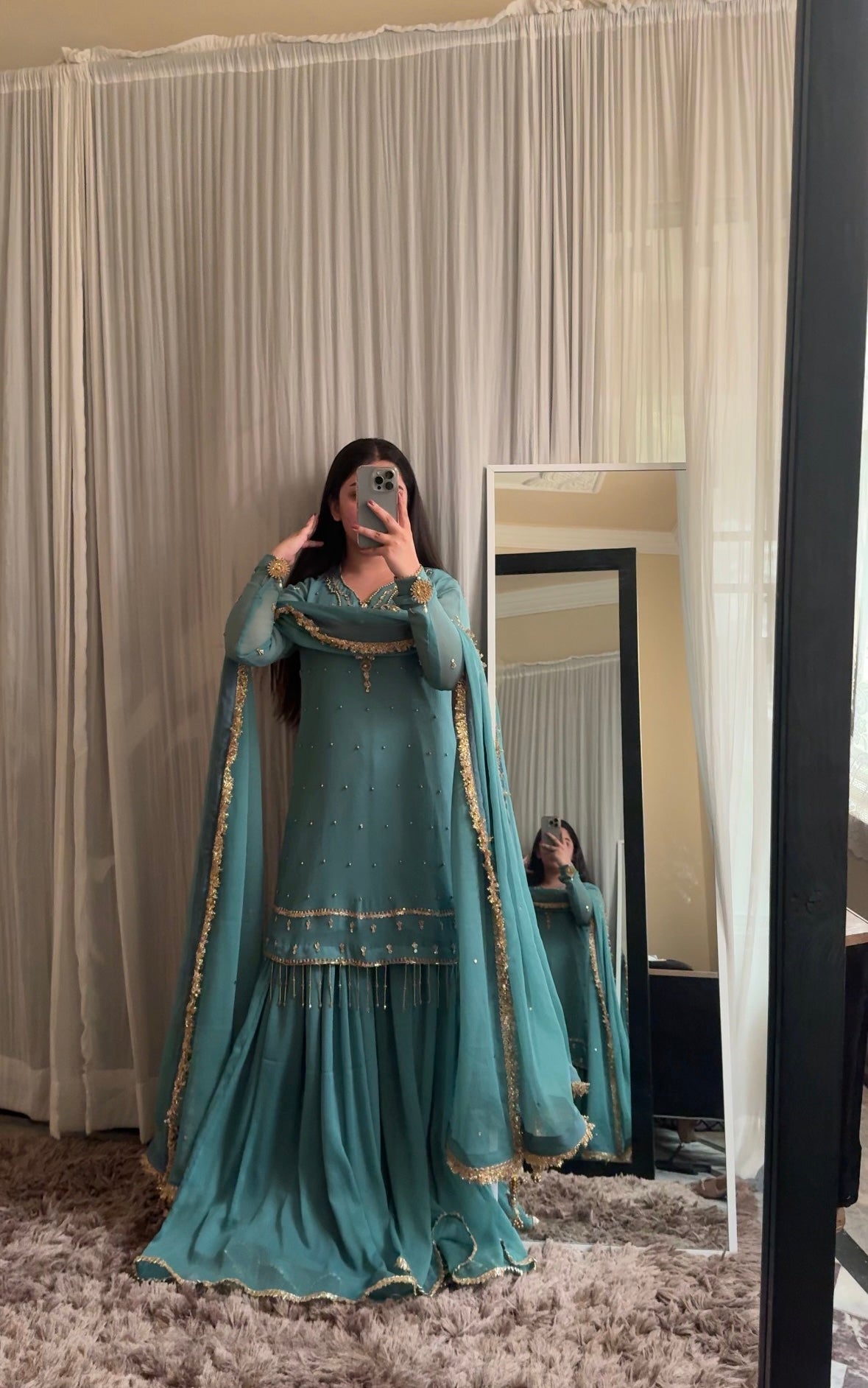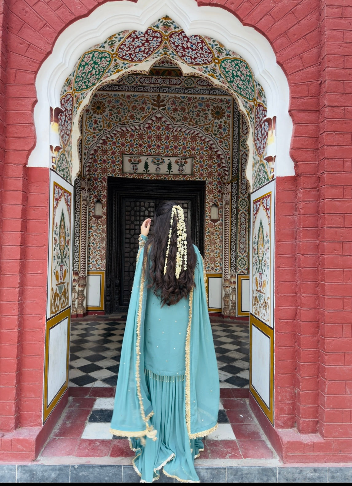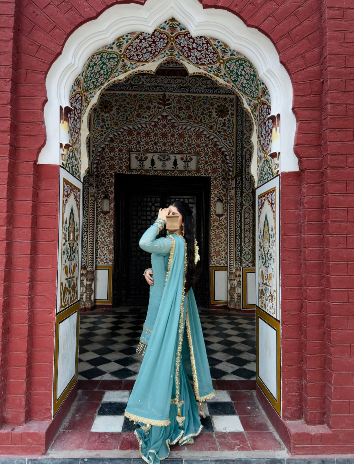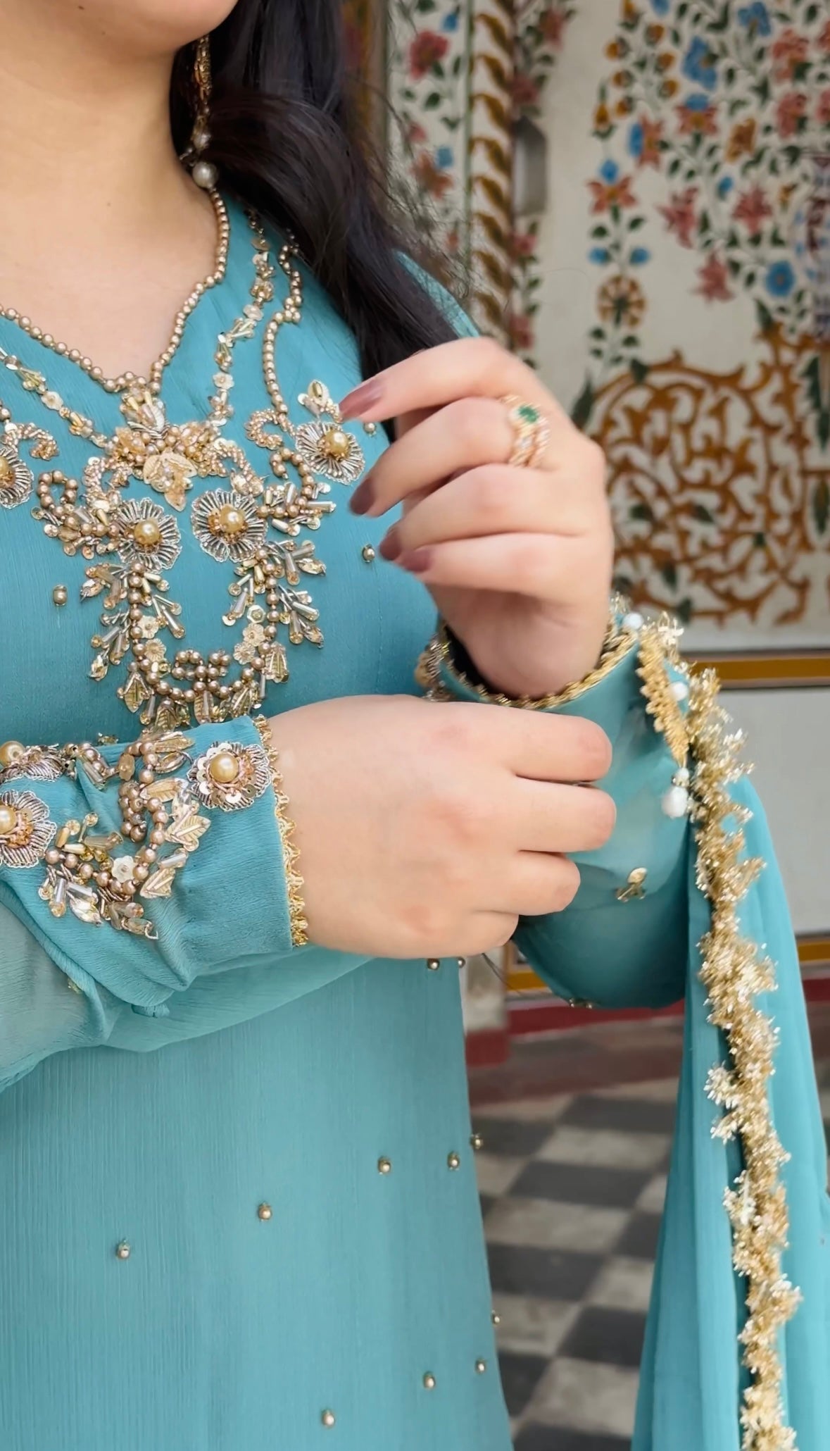 Can be worn for Eid or mehndi/ wedding events. So versatile. Jazz it up with heavy jewellery or florals