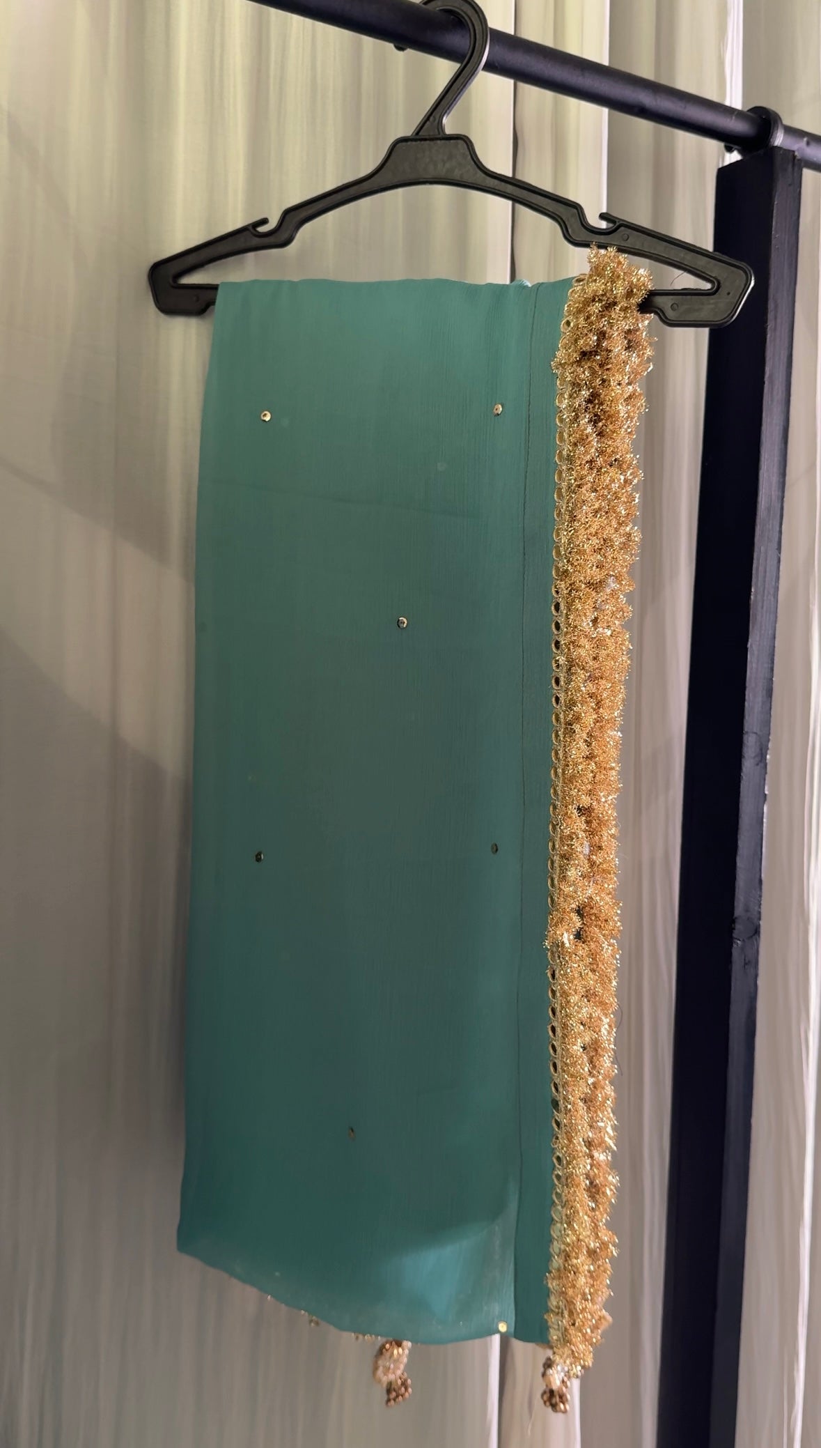 Chiffon dupatta with gold and short Kiran lacing and gold tassles all 4 sides