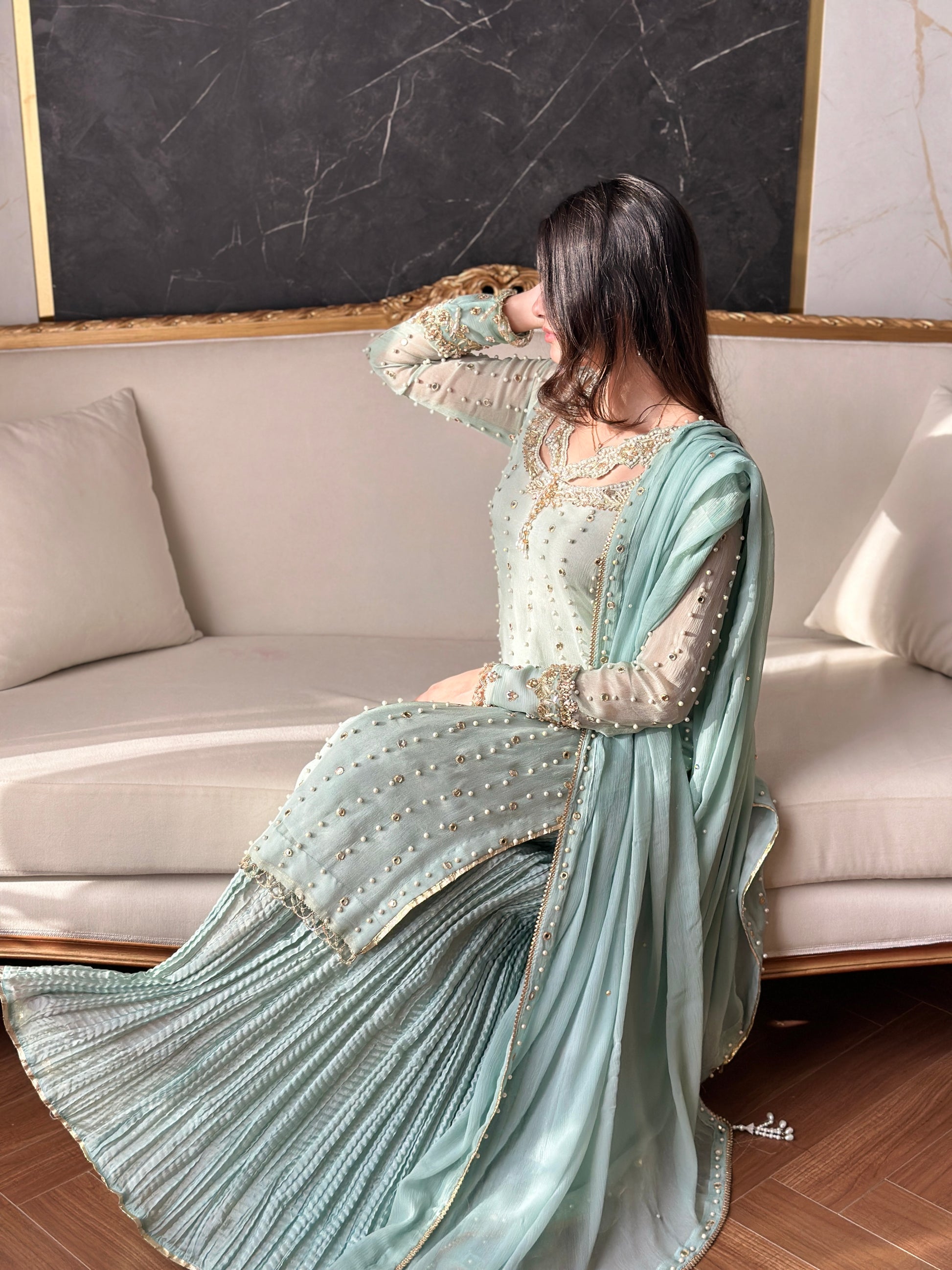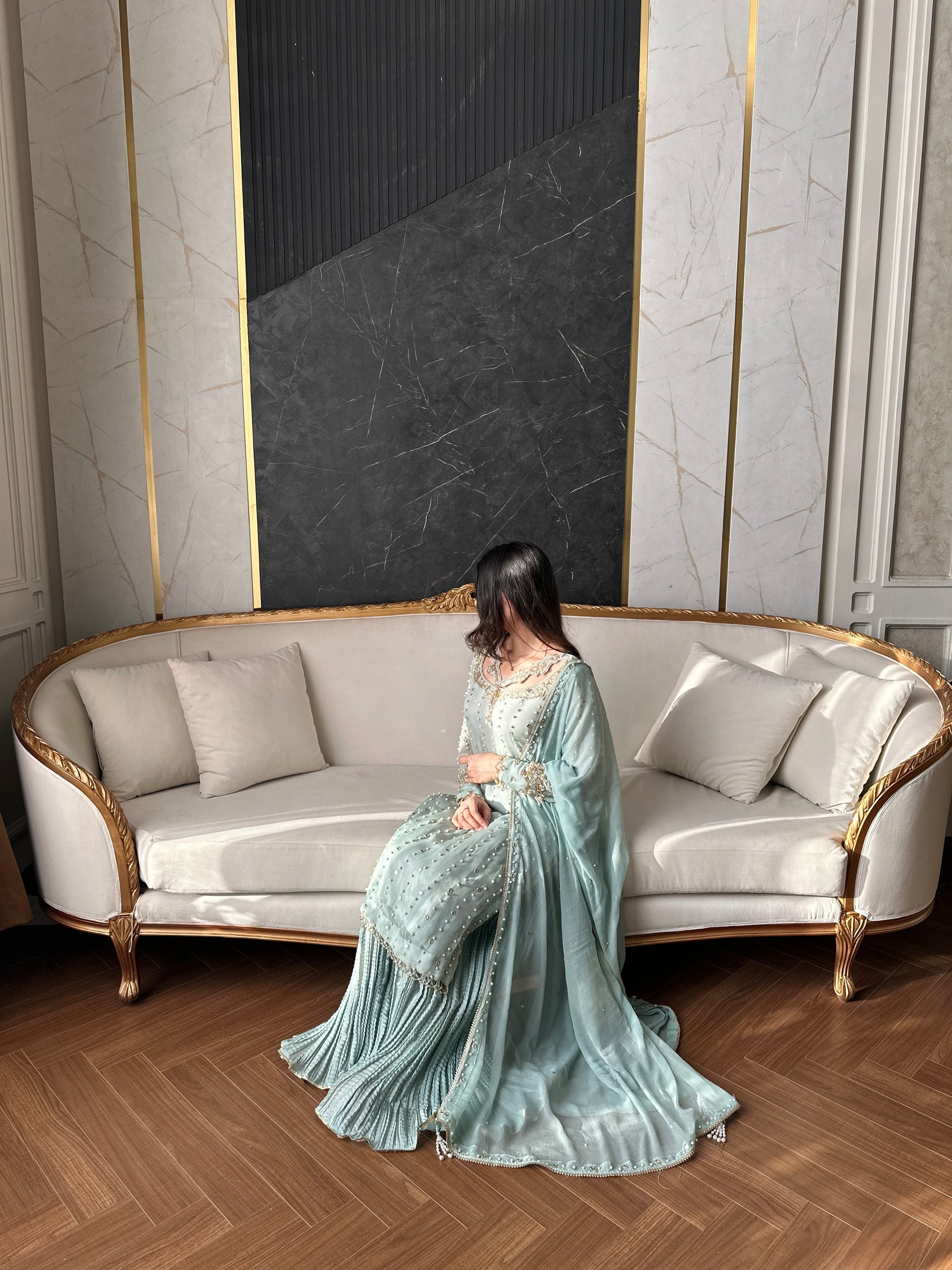 Dusky muted pastels blue shade- perfect for Eid and summer events