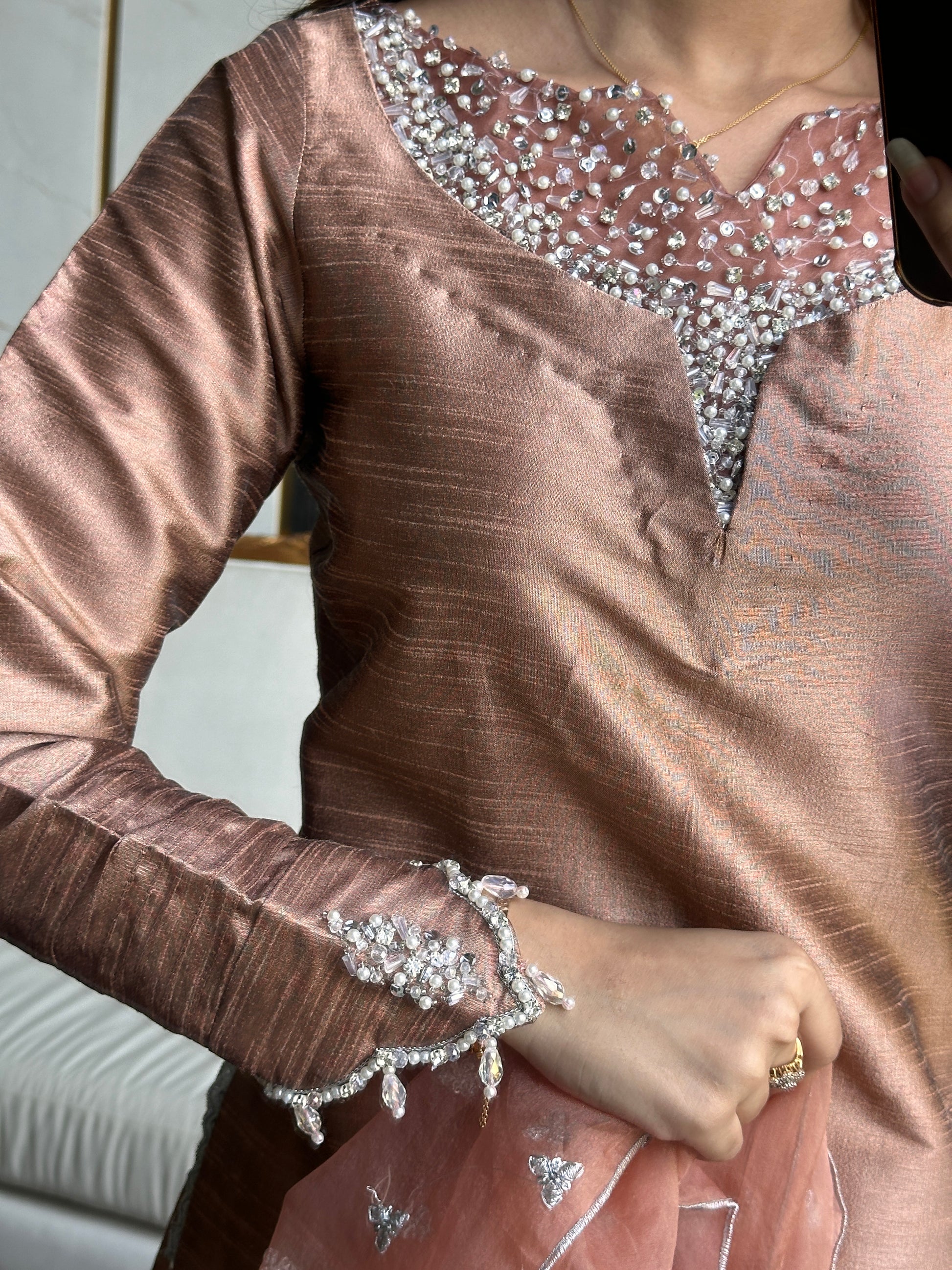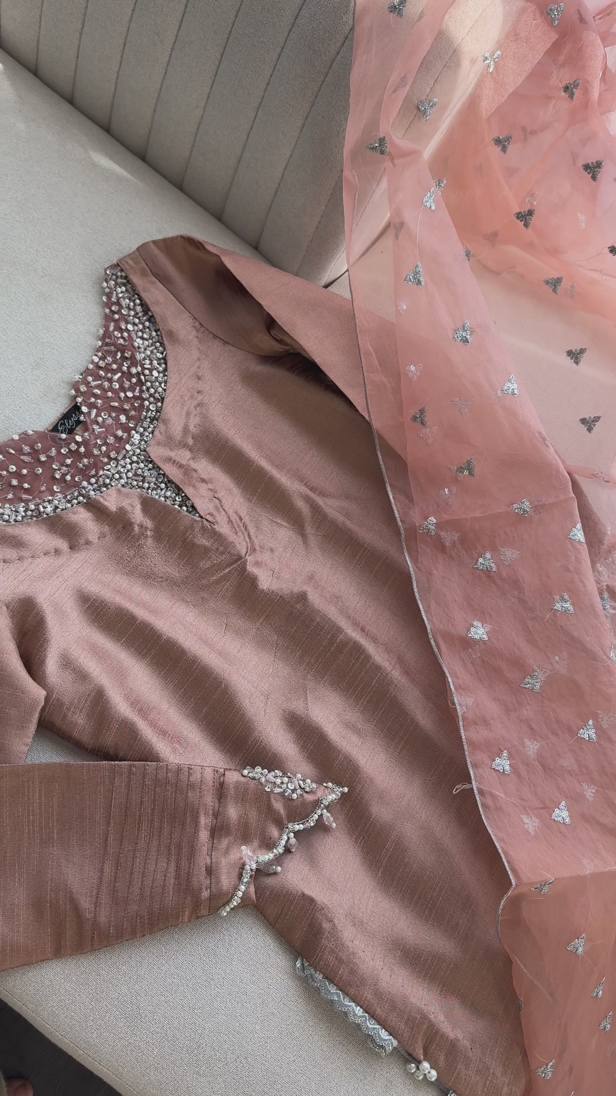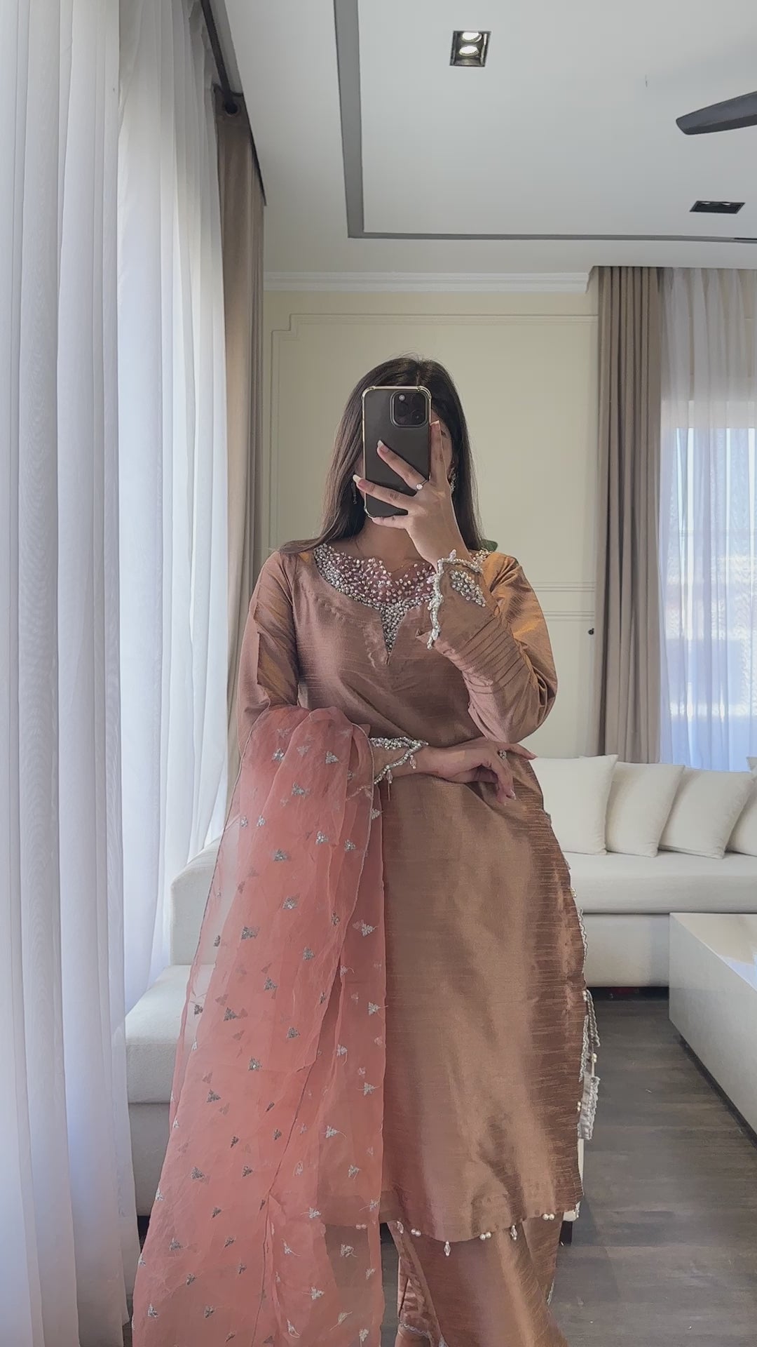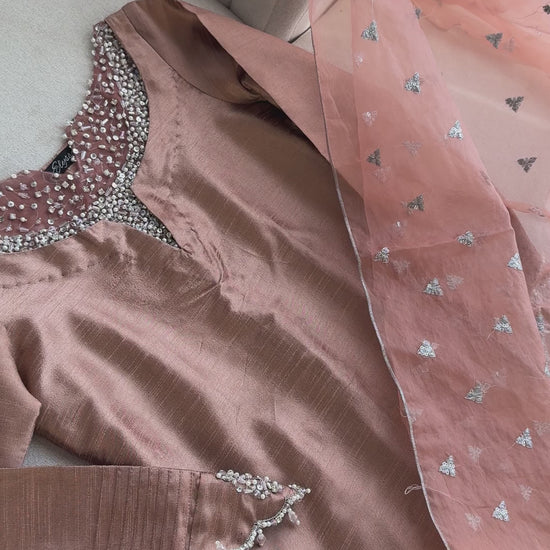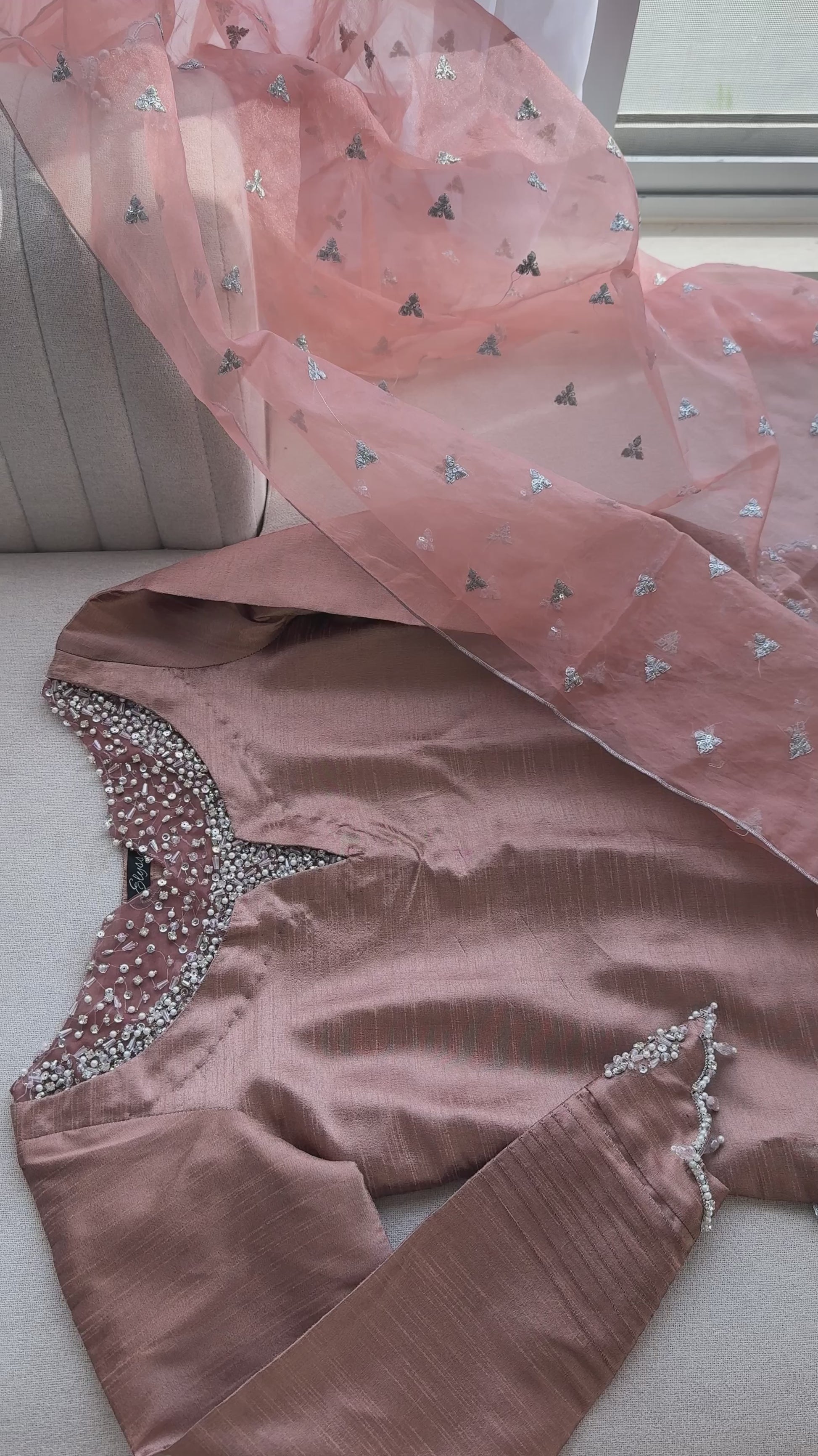 Intricate stone work on the neckline, all hand work and stunning silver work on the end of sleeves