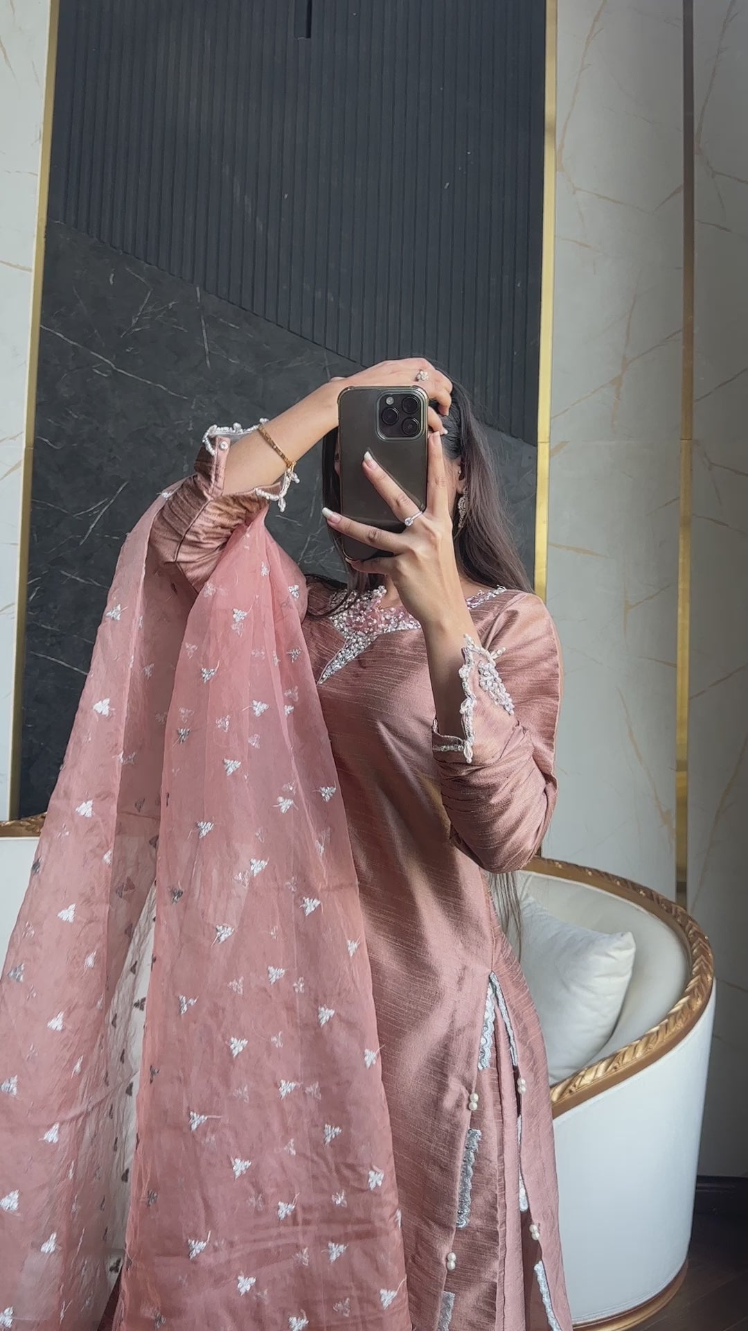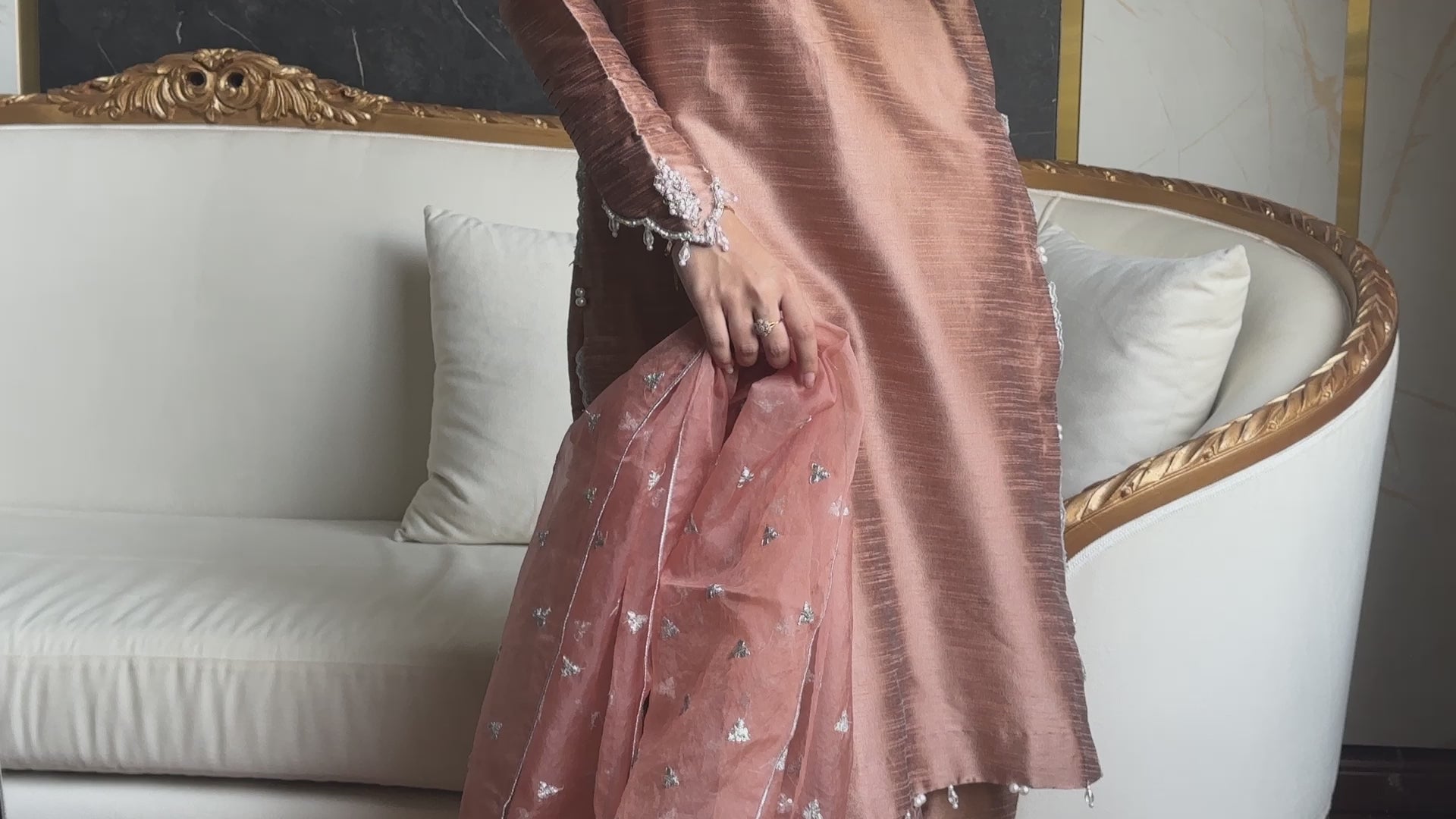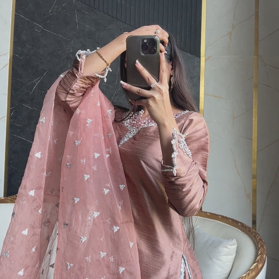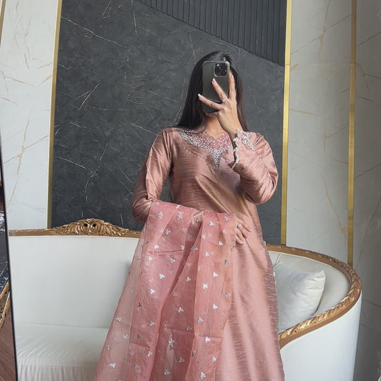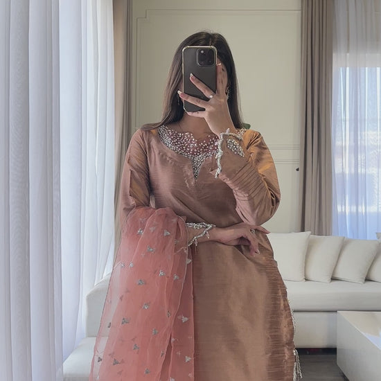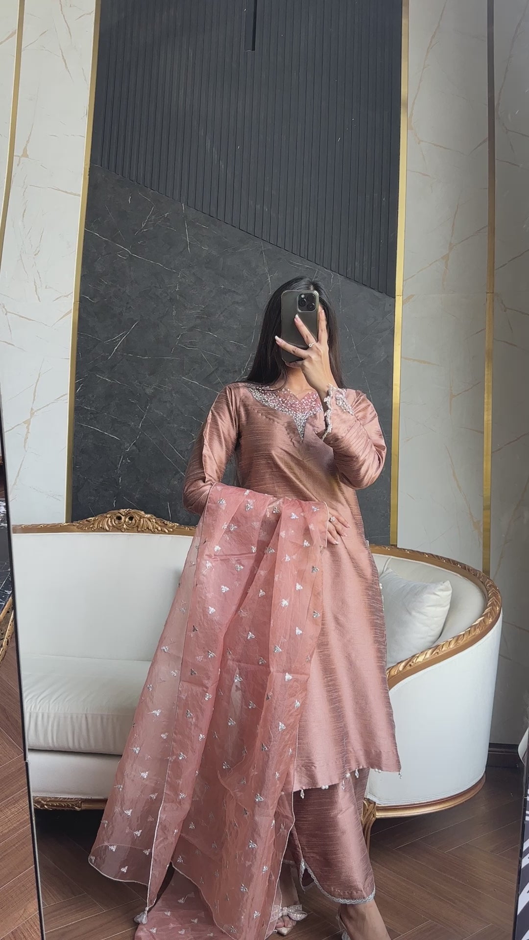 Intricate stone work on the neckline, all hand work and stunning silver work on the end of sleeves