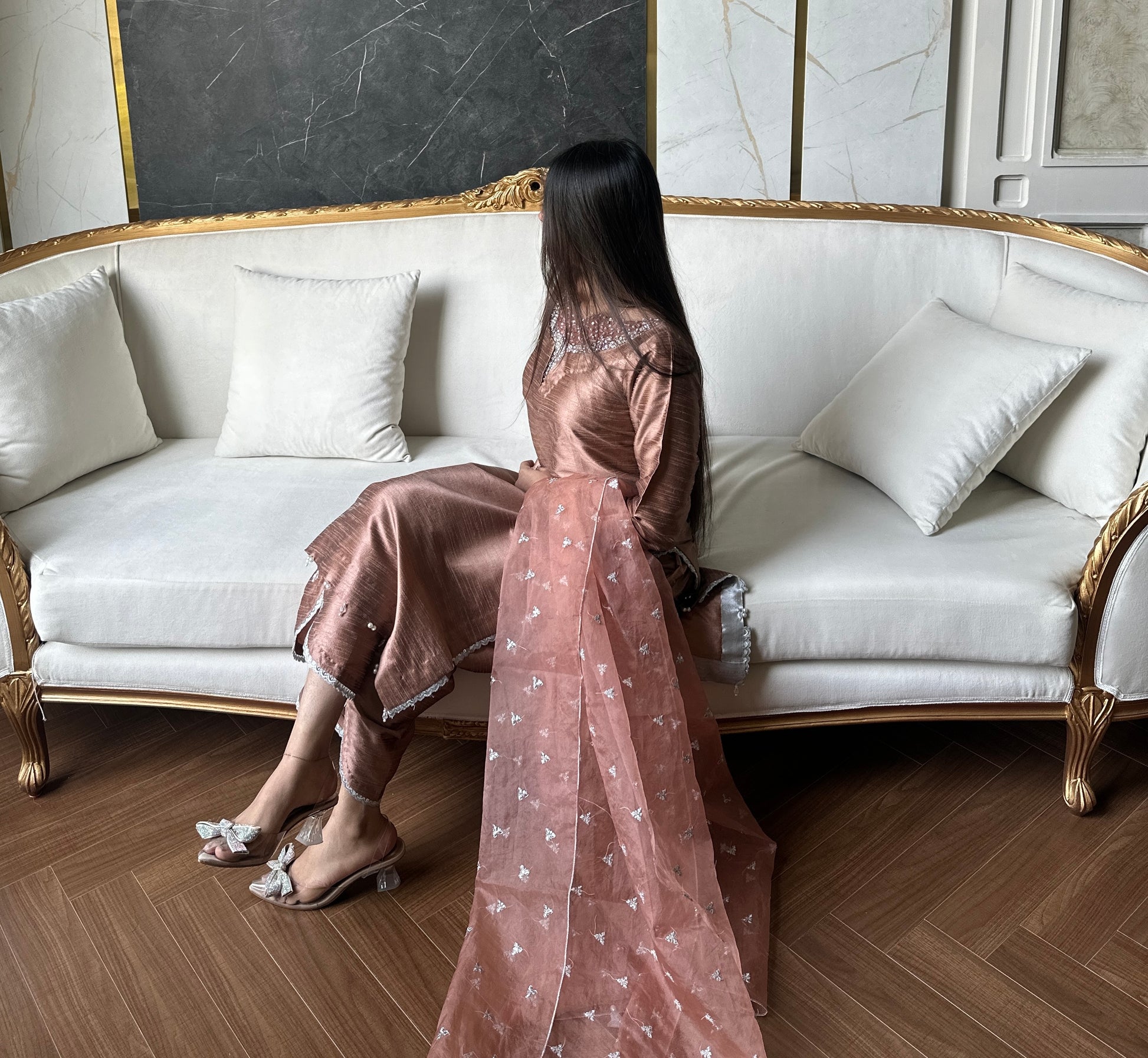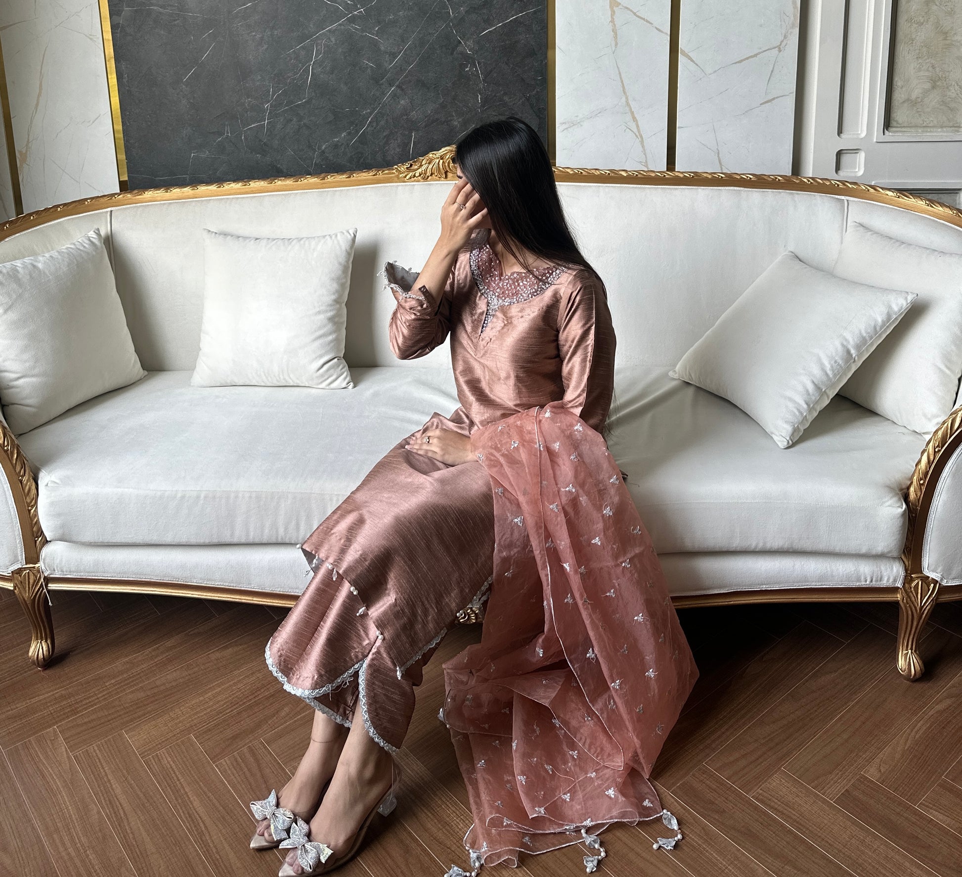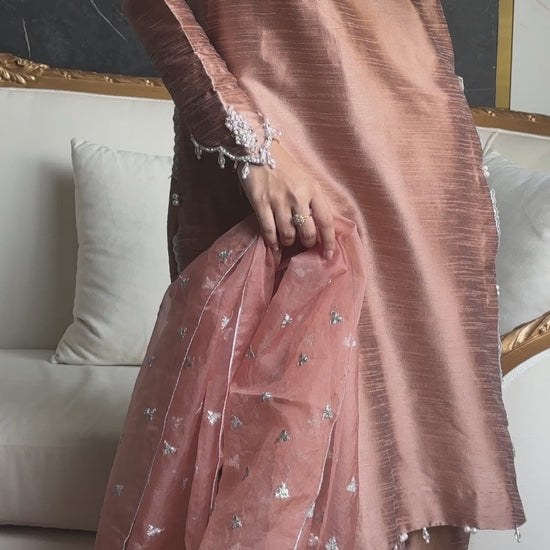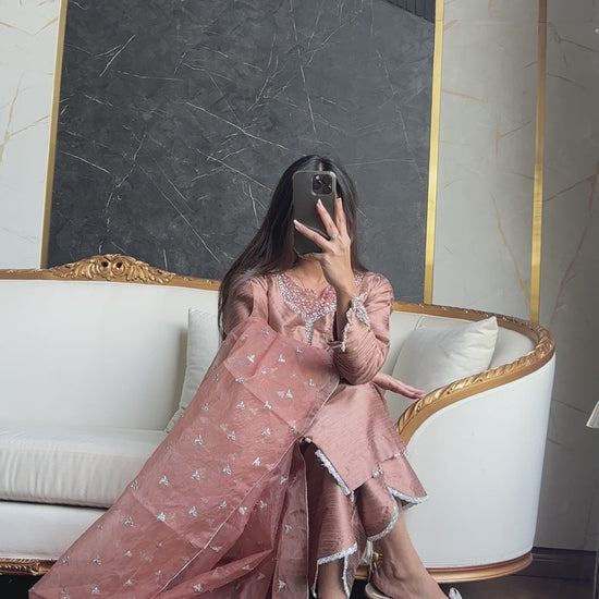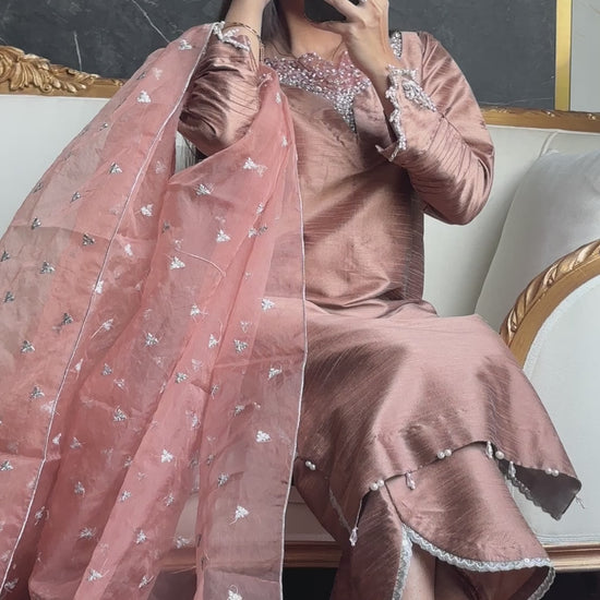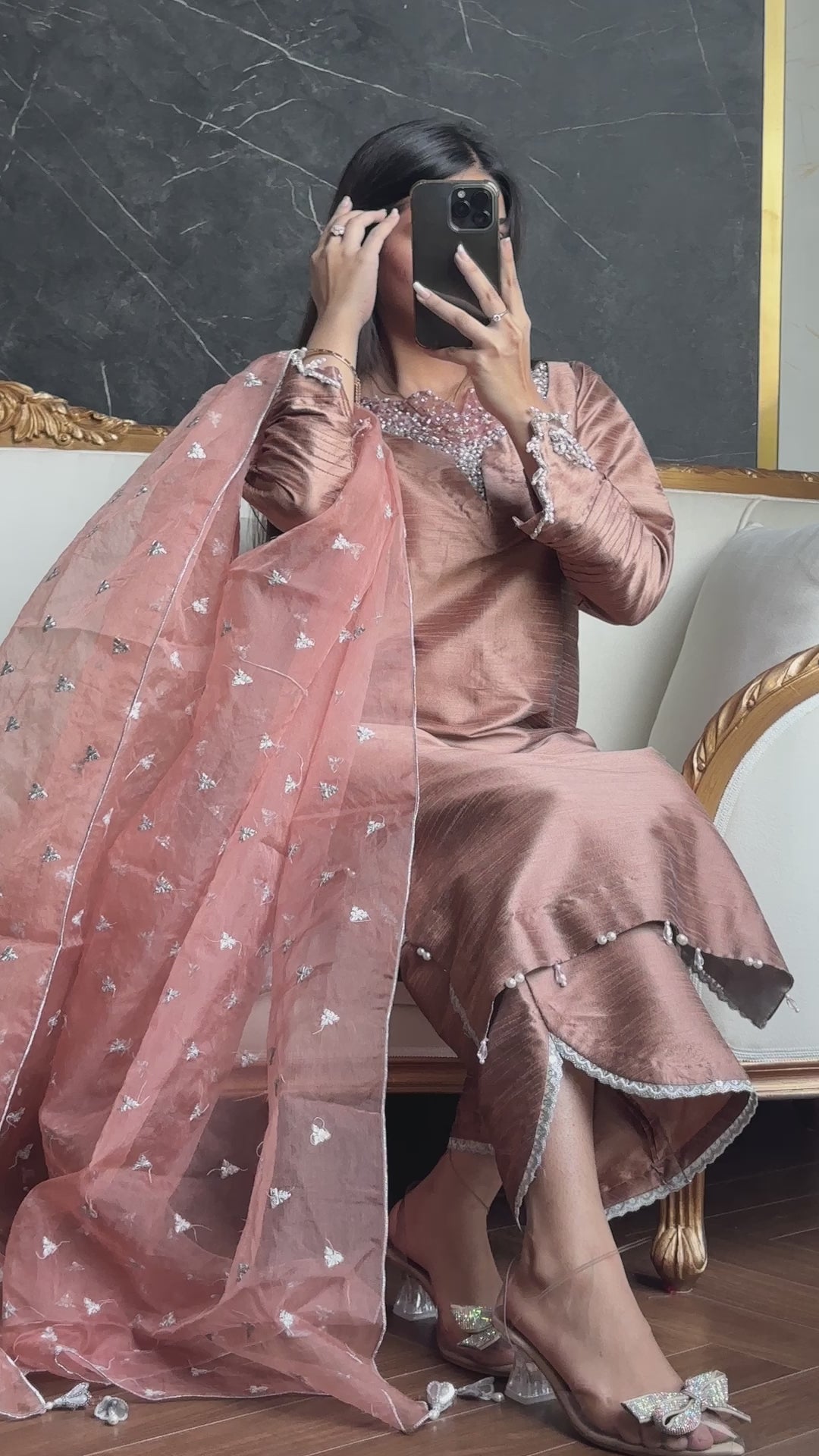 Intricate stone work on the neckline, all hand work and stunning silver work on the end of sleeves
